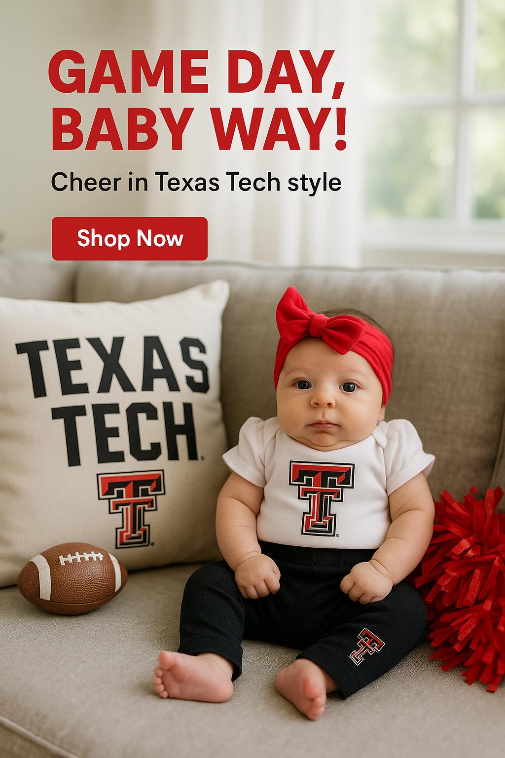 Ready for some Game Day with Texas Tech? Order this onesie and legging set for the upcoming Texas Tech season. Puff sleeve onesie and black leggings. Can be ordered in Newborn, 0-3 months, 6-9 months. Special orders welcome. 100% cotton. For larger sizes please email for price.