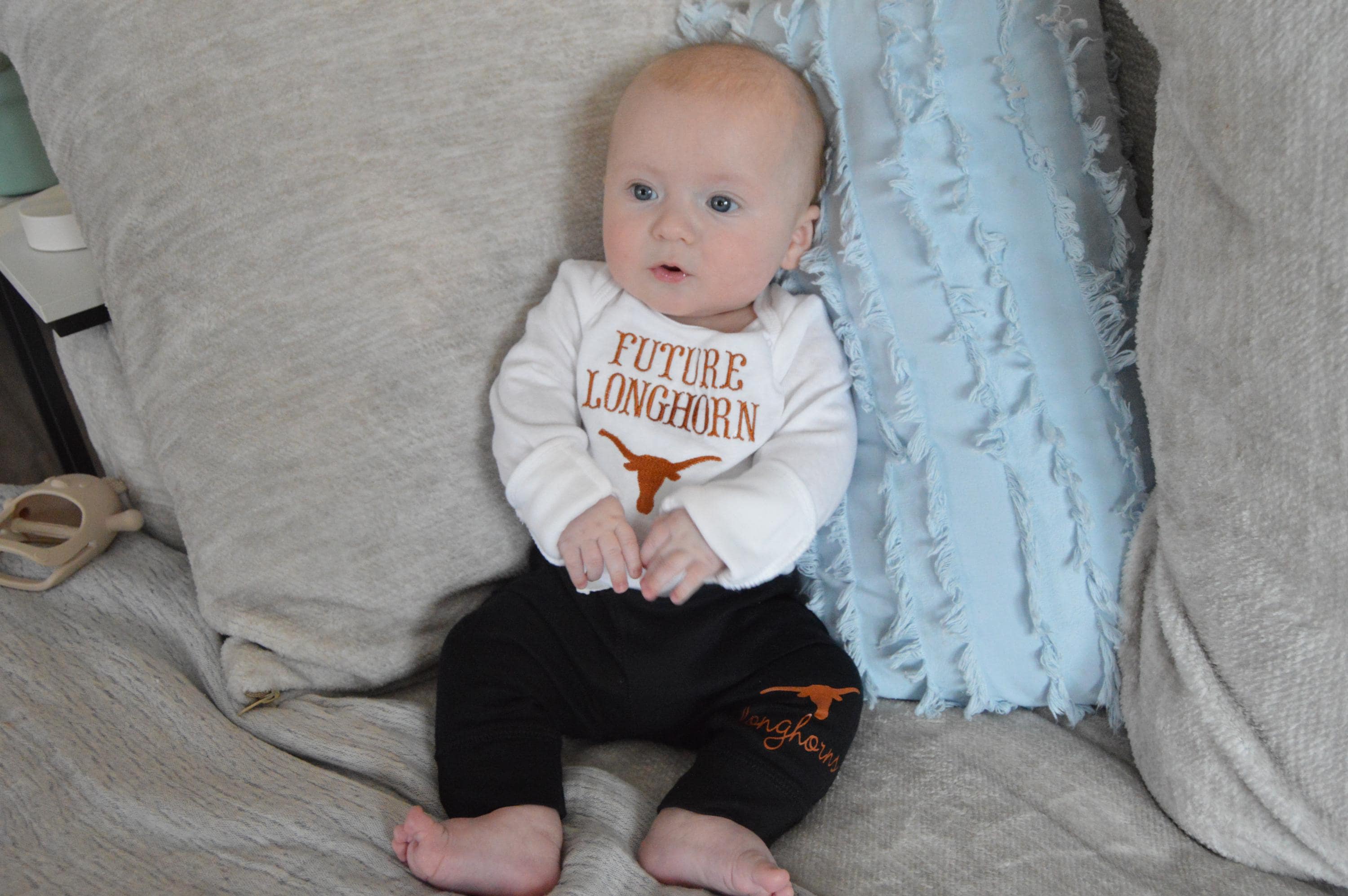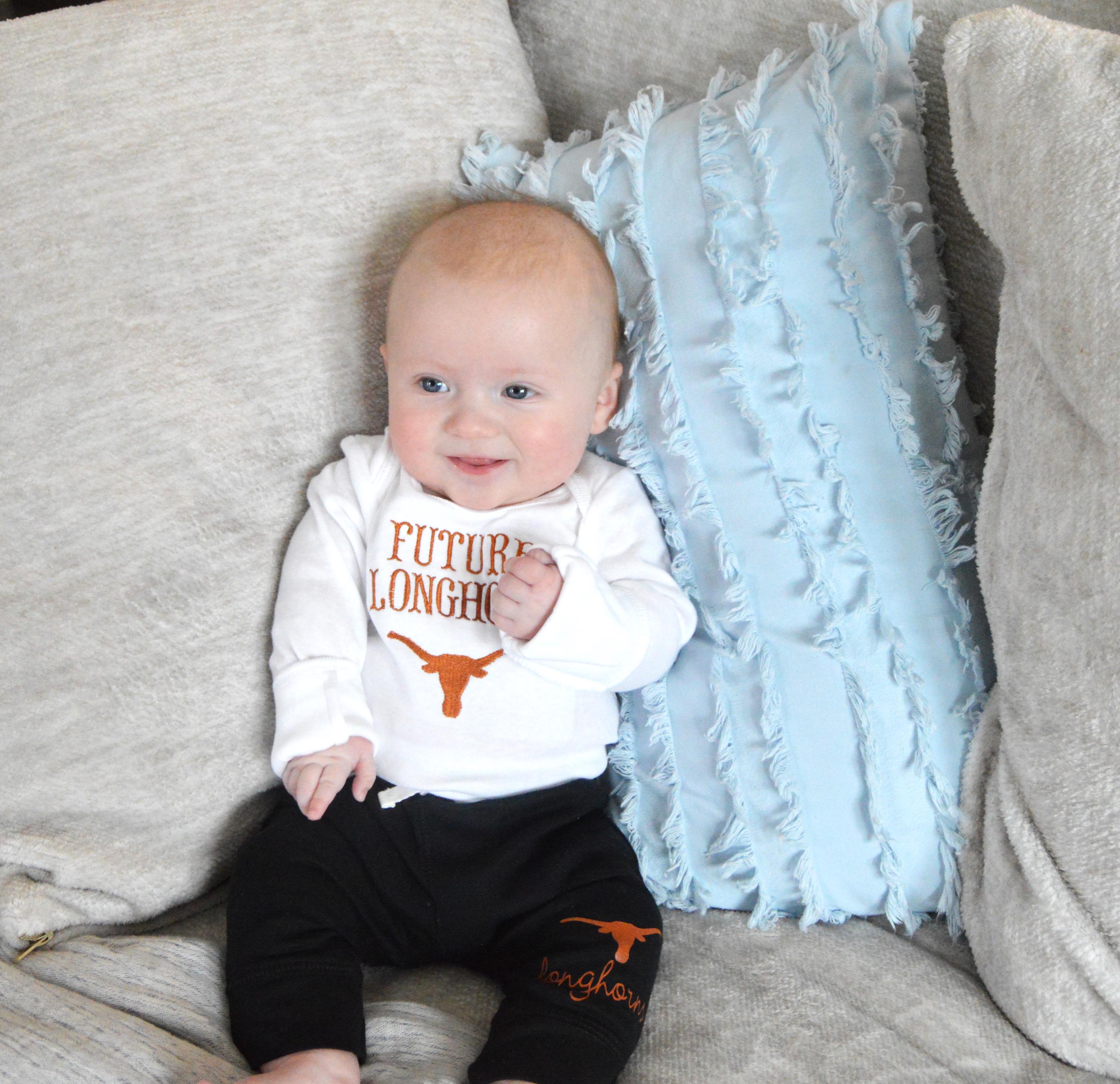 Whether is is for game day, everyday wear, photos or the perfect "Longhorn" shower, thi gift outfit brings the right mix of comfort and team pride.